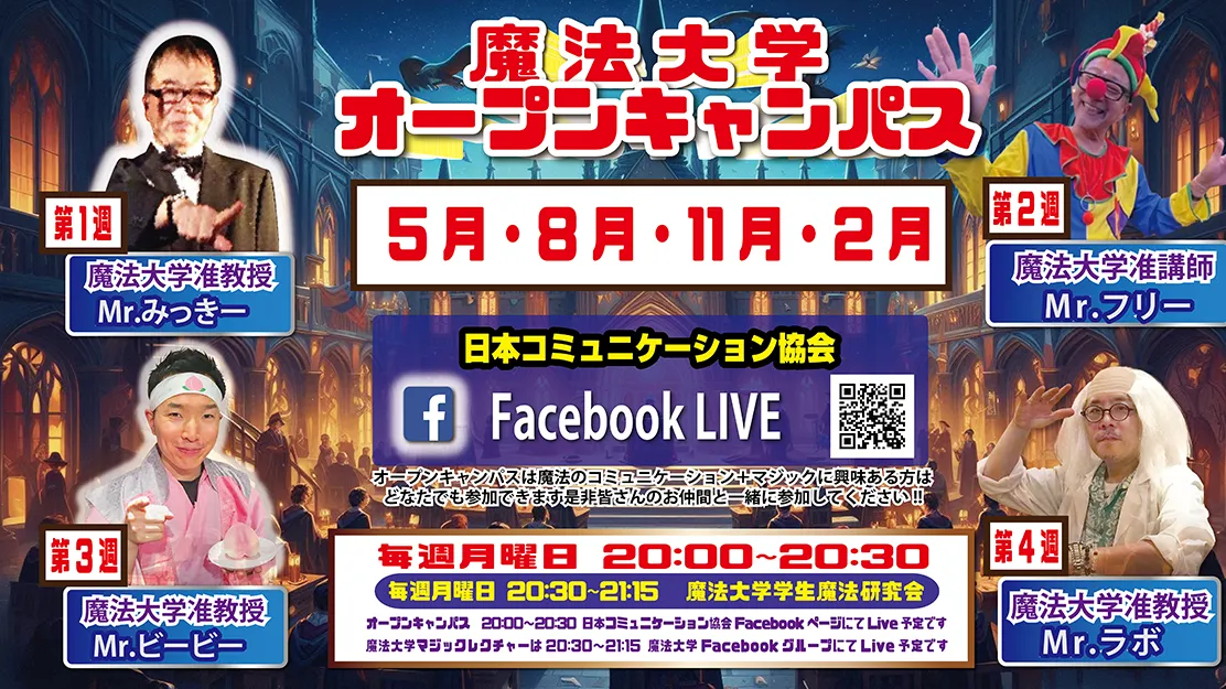 オンライン&リアル魔法大学は、マジックを通じて、ワクワク楽しく、コミュニケーション力や表現力を学べる世界初のアカデミーです。